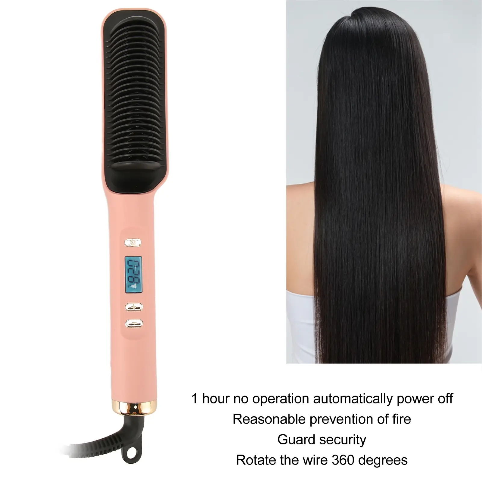 Battery Included: No Chemicals Of Very High Concern: None Maximum Temperature: Above 180℃ Temperature Control: Digital Suitable Hair Type: Dry Hair Minimum Temperature: Below 80℃ Power: 25w-39w Color:Khaki Material: ABS Size: 28x4.3cm..