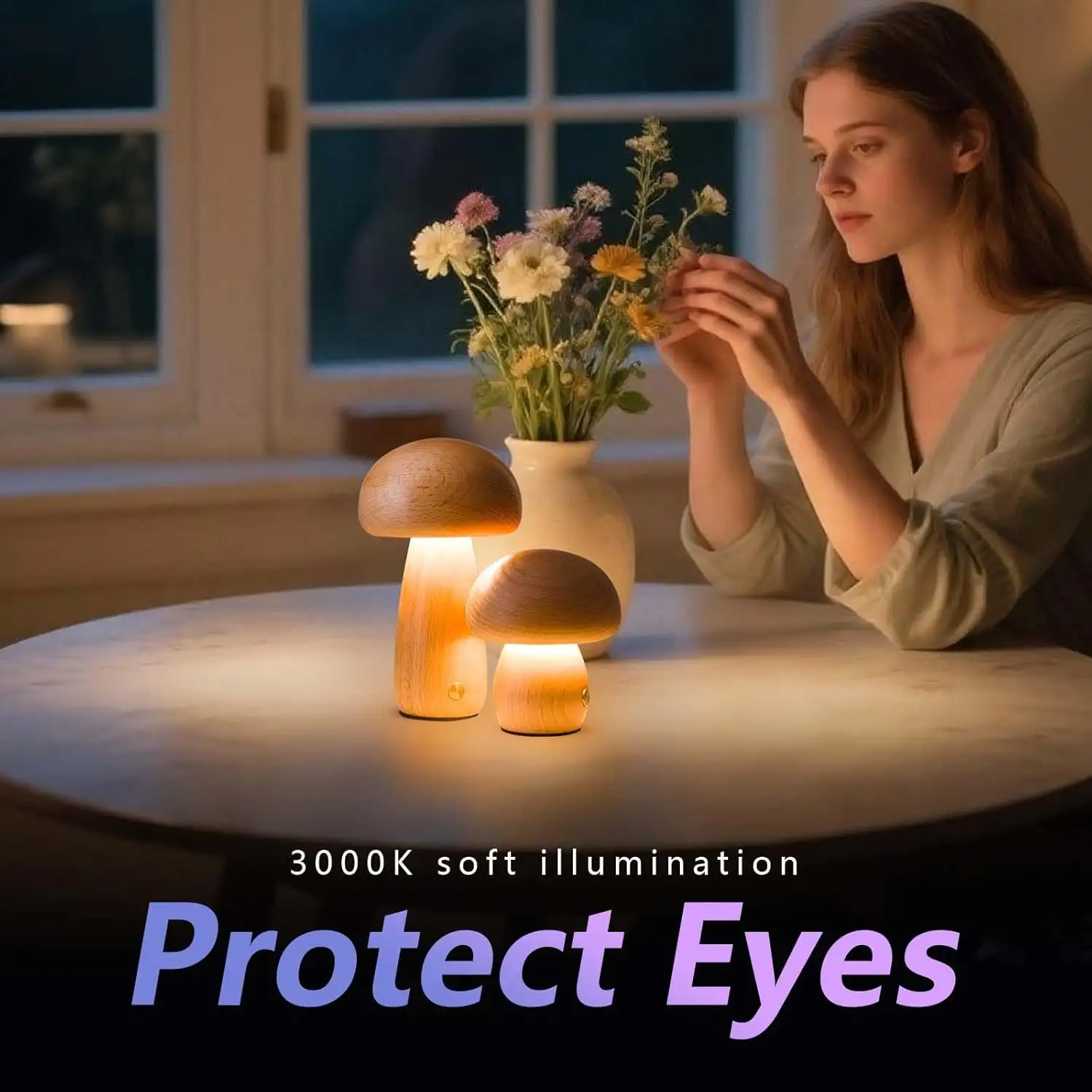 Mushroom Night Lights Rechargeable Cordless Wooden Mushroom Portable Desk Lamps For Bedroom Studyroom